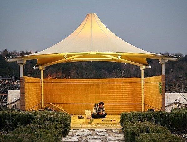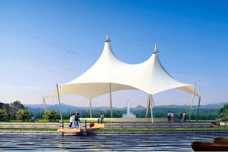 A tensile gazebo is a modern outdoor shade