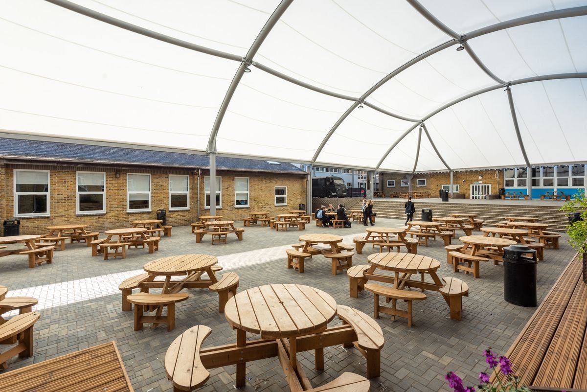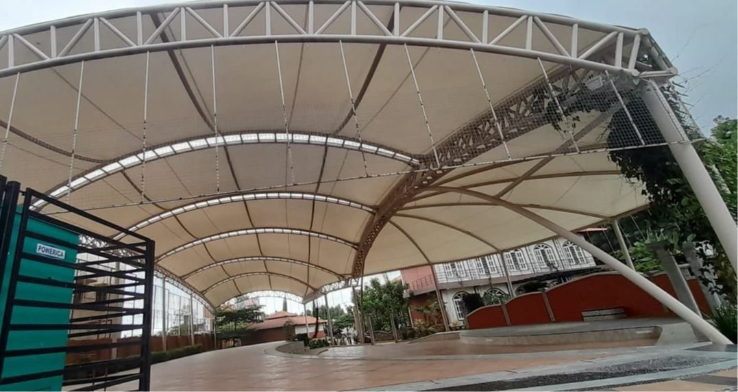 ₹400.00 ₹450.00 / Sq ft Tensile structures are increasingly used for modern cafeterias, restaurants, and rooftops because of their aesthetic appeal, flexible design, and practical benefits such as natural lighting and rapid construction. They are commonly chosen for outdoor dining, open-air lounges, covered walkways, and stylish rooftop venues. Advantages: Fast installation, customizable forms, energy-efficient through